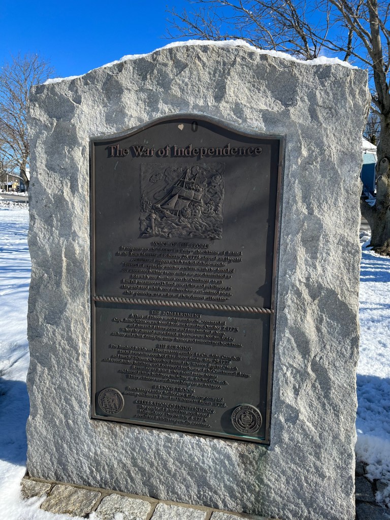 Bristol’s Revolutionary War monument stands in Independence Park on Thames Street. The front features a metal plaque. On the back is a list of names Revolutionary War veterans from Bristol.